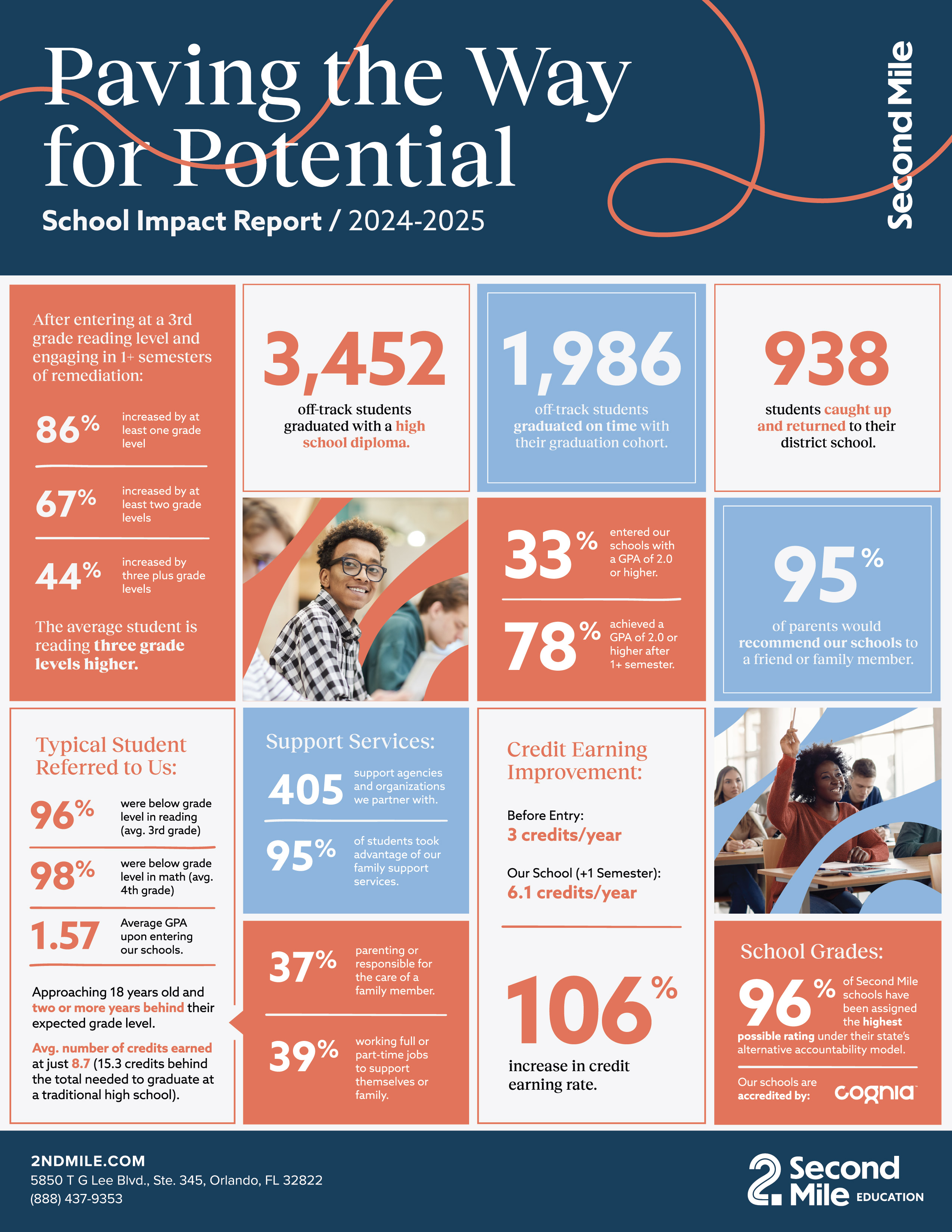 The Texas High School for Accelerated Learning is proudly supported by Second Mile Education. As part of Second Mile, we are accredited by Cognia and part of a network delivering outstanding results: